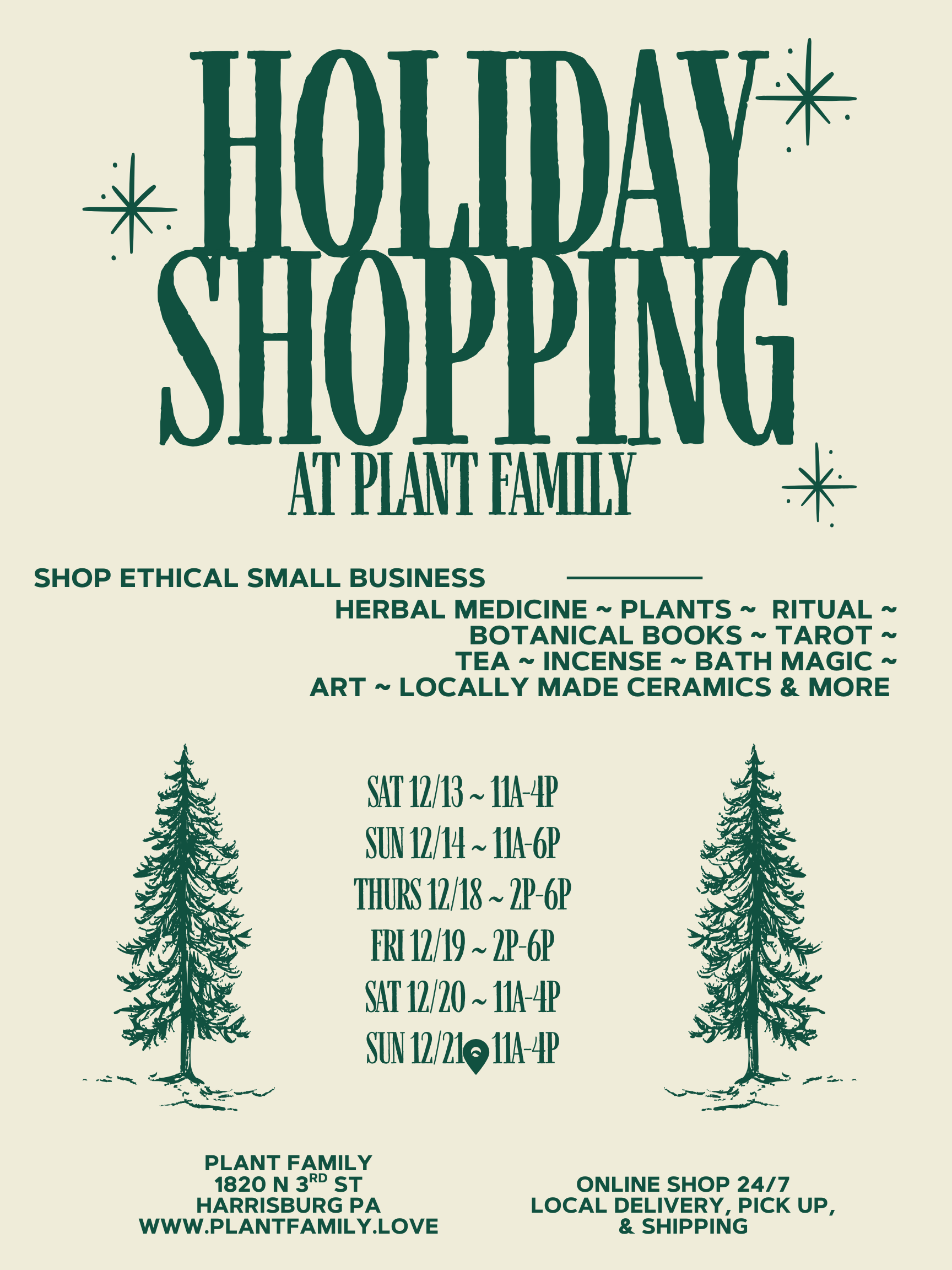 To register please email Sara Rose at plantfamilyhbg@gmail.com / registration closes Friday November 11th at 9p